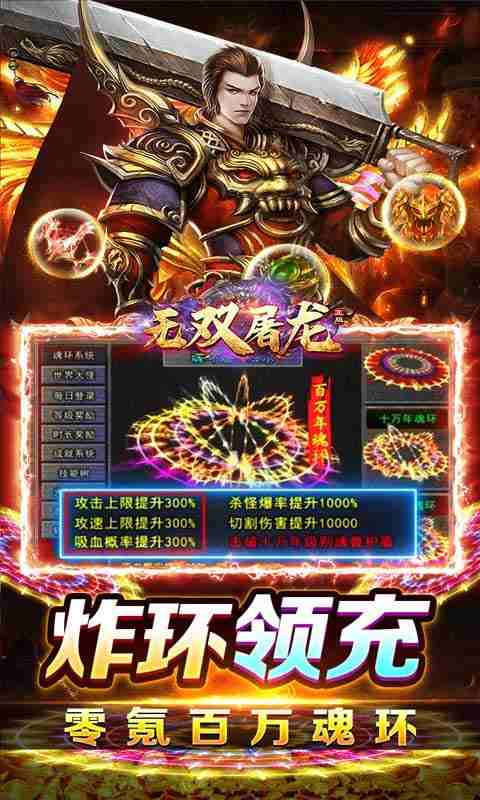 《无双屠龙(炸魂环免充送)》是一款全新传奇手游,免费打金刷充福利版全新来袭。炫丽的游戏技能特效,结合了神器、武魂、修仙等玩法,剧情丰富有搞头,技能特效有讲究,冒险纵横,热血的战斗为你带来超爽的体验!炫丽的技能秀翻全场,精准的打击斗智斗勇。在玩法方面,以打金、升级、爆装、抢沙等传奇核心玩法为主。魂环、仙器升阶战力加持,荡漾仙界,只羡鸳鸯不羡仙!快快加入吧与兄弟们征战吧,成就剑仙!变身传奇仙剑修士,一起渡劫修仙!上线送十年魂环、魂殿之心、麻痹/复活/护身,内功秘籍内劲Lv,每日刷怪领万元真充,0充领魂环赞助,真充无限爆刷无限领!兄弟快上线,真热血剑仙传奇邀你来战!