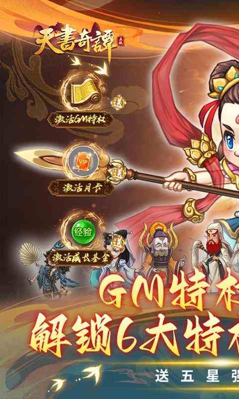 《天书奇谭(送哪吒刷充)》是由上海美术电影制片厂正版授权,以原版动画为原型制作的放置卡牌手游,游戏轻松挂机,培养简单,游戏内置GM系统,可以解锁各种特权、购买礼包、激活累充、无限金币、无限经验等福利,游戏赠送大量抽卡道具,可以轻松获得超多英雄。