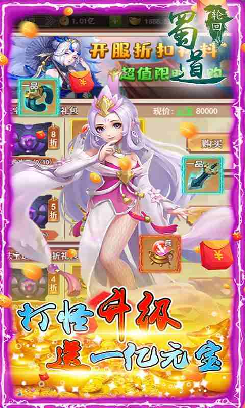 福利1:上线直送GM9,1888万元宝,一亿铜币! 福利2:打怪升级送一亿元宝! 福利3:无限铜币只需一元开启! 福利4:7天登录送红色坐骑、红色宠物、红色伙伴,仙途绝不孤单! 福利5:签到免费送充值卡、大量进阶材料,战力狂飙!