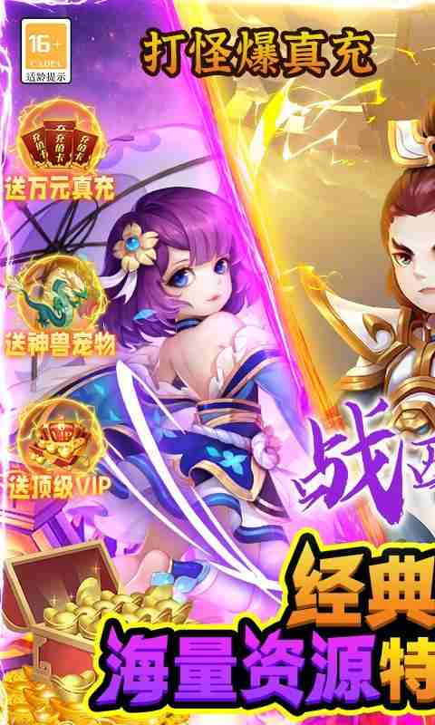 战西游福利版游戏特色<p>1.元宝*88888、银锭*88W、铜钱*一亿、万元充值卡、神兽之魂*99、至尊GM称号<br/>2.顶级至尊VIP,每天可获得至尊VIP奖励 <br/>3.宠物神宠/坐骑神宠/神器神宠礼包免费三选一<br/>4.爆充boss每天免费刷<br/>5.一键完成剧情主线任务,上线就直爽<br/>6.活跃登陆免费抽取真充卡</p>