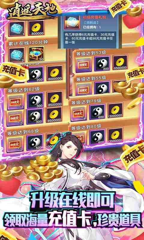 ★升级即可领取万元充值卡,30星通关关卡,即可领取充值卡,每日在线也可领取充值卡。