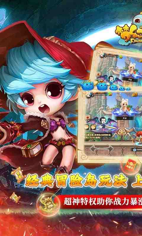 梦幻仙境(冒险岛超神爆金)主打还原经典角色与画面,独特的Q梦横版冒险过关玩法唤起你的童年回忆!深度还原经典角色和经典画面,特效爆炸的炫酷技能,激情澎湃的战斗画面,超多超炫的时装可以自由装扮,无论你是战力PK党,还是大招技术党,亦或是组合策略党,在这里都可以收获独属于你独一无二的快乐!精灵出战、装备升级、冒险答题、家园答题等等,超多玩法丰富你的游戏体验!别再犹豫啦,精彩不容错过!
