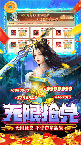 5.免费兑换限时商城,特戒、上古仙器、精美定制、奇珍异宝等高价值道具统统免费兑换,材料打boss即可获得