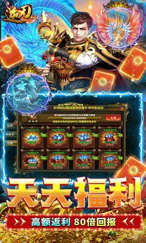 上线福利:刀刀切割只只高爆(称号)*1,紫钻会员1,VIP20,钻石*20万,元宝*1010万,10元充值卡*1,10元充值券*1 首发新版本多重福利齐发: 【第一重】开局免费送紫钻特权,满V直升狂领资源。 【第二重】充值比例1:1000,成长投资享受高额8000%回报。 【第三重】首充即送绝版武器、称号、至尊神装。 【第四重】装备爆率极高,多余装备可回收钻石。