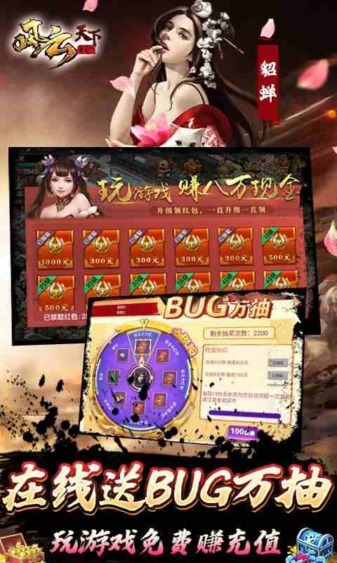 1.版本特色,免费直充,真充靠手速 2.上线直达VIP10!豪华满V开局,超值福利拿到手软,白嫖四大转盘,海量道具到回家。 3.每档首充翻三倍!充值比例1:10000! 4.VIP变态礼包,折扣大礼包,限购超值礼包,大爷!快来买呀!! 5.bug万抽,魔·吕布等你来拿 6.10档免费特权 不花一分钱直接白给 7.更有后宫选妃,培育皇子,征战之余,享受繁衍子嗣之乐。 8.线上线下活动双重出击不停歇,福利满满!