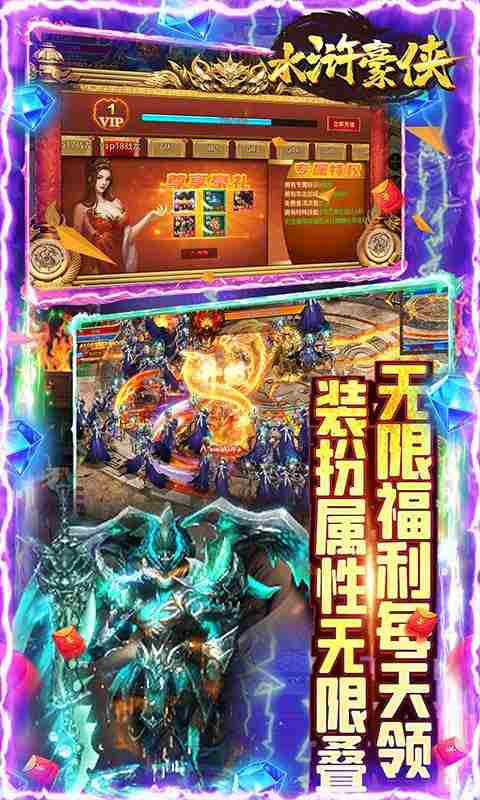 水浒豪侠(满攻速无限打金)是一款超爽的免费福利传奇手游;上线送2000%攻速体验,极品装扮及称号,千亿战力无限打金;开局起飞,BOSS无压力;送真充不花钱,散人也能搞顶级;更有GM商城,极品道具钻石即可购买,游戏爆神装,装备回收换钻石,特色四属性转职上线即可任意选择,经典单职业,玩法简单好上手;超给力福利,超多打宝地图,超快刷钱速度,超多玩法活动包你爽翻天;