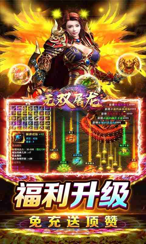 《无双屠龙(九门派送亿充)》是一款全新传奇手游,免费打金刷充福利版全新来袭。出奇游戏剧情背景,结合了神器、九门派职业、五行之术等玩法,剧情丰富有搞头,技能特效有讲究,地图之间冒险纵横,热血的战斗为你带来超爽的体验!炫丽的技能秀翻全场,精准的打击斗智斗勇。在玩法方面,以打金、升级、爆装、抢沙等传奇核心玩法为主,你可以加入喜欢的门派,挑选炫酷的门派心法属性,学习绝顶的门派技能。上线送神器,百万豪礼免费送,限时豪礼多倍豪礼领不停!快快加入吧与兄弟们征战吧!变身传奇修士,一起征战沙场!每日狂送充值,疯狂爆率,真充无限爆刷无限领!兄弟快上线,真热血传奇邀你来战!