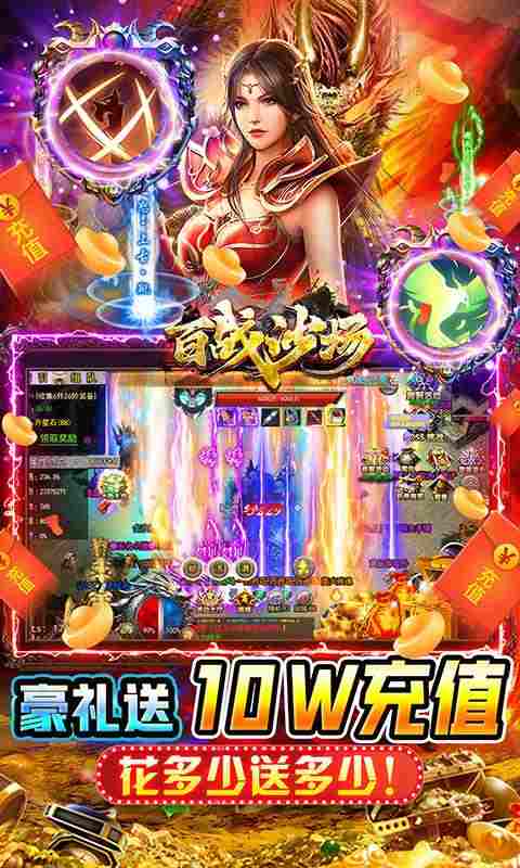 《百战沙场》超爽武侠传奇,开局送地藏时装!再送神技狂飙神掌,称霸沙城、全新专属GM特权,助力霸区暴爽打金!上线送GM魂环+GM龙脉!全图爆真实充值+GM币,首充、自动回收、自动分解全都免费换,独创GM破解传奇玩法,免费送投资,每日礼包,惊喜充值返利,送满级VIP,满福利开局,刀刀爆充!