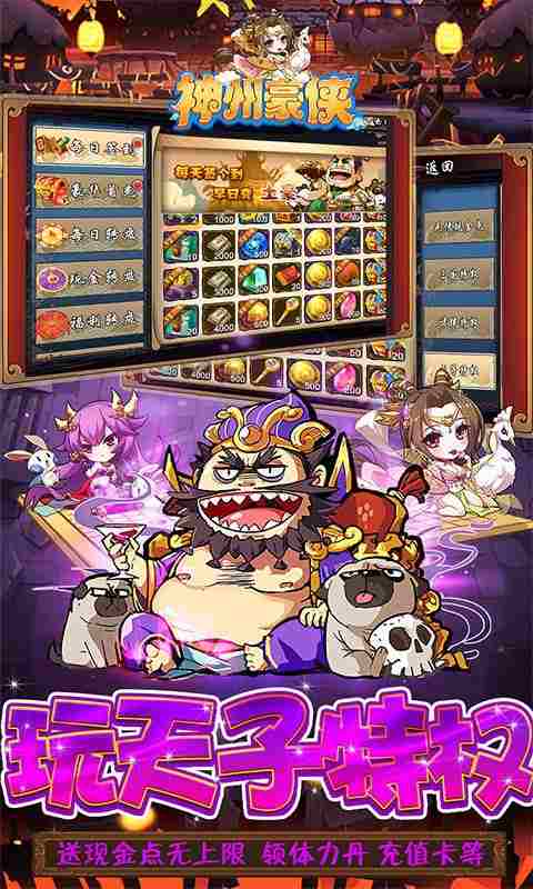 ★天子特权:现金点无上限使用,还可每日领取现金点和体力丹以及充值卡