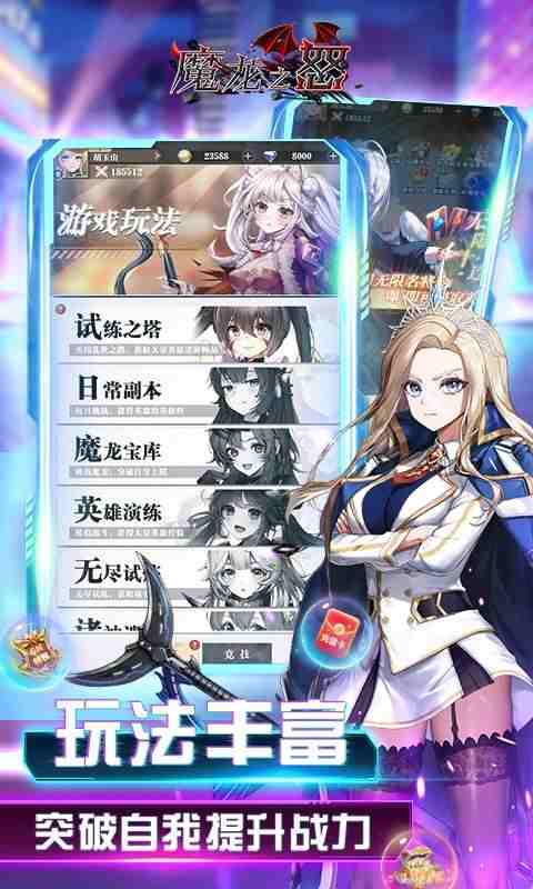 《魔龙之怒(二次元科技狠活)》是一款以冒险闯关为主的二次元画风卡牌回合游戏,组建自己喜欢的阵容踏上冒险之旅,在一次次冒险中开启你的英雄之路。英雄分为不同的属性组成不同的羁绊,四大职业各有特色,不同的阵容可以延伸出无限的玩法!游戏中还有寻宝模式,公会系统可以让玩家在游戏中体验无限的乐趣,获得五星英雄,组建王者队伍,冒险之旅中尽情享受战斗时刻!可爱Q萌的画风让人欲罢不能,还在等什么,快来与可爱女神一起踏上英雄之路,尽享悠闲时刻!