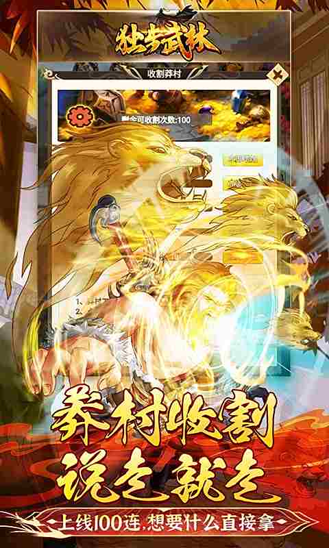 剑攻集团影业再度开拍旷世大作《独步武林(百万级莽村狂乱飙)》;狂飙八小强齐聚莽村,给你带来想不到的福利版本;上线直接送20星英雄,还有谁能够这么豪横;莽村收割工具直接送100个,想要什么直接提取,没有一点点门槛;狂飙特权还是那个味道,直接上线免费解锁,充值什么的再也不是难题;更有超超超值的签到奖励,世上最强福利;提额无限制,有多少就可以用多少,不搞俗套门槛限制骗氪不存在;铁子们,快来和强哥一起吃鱼!