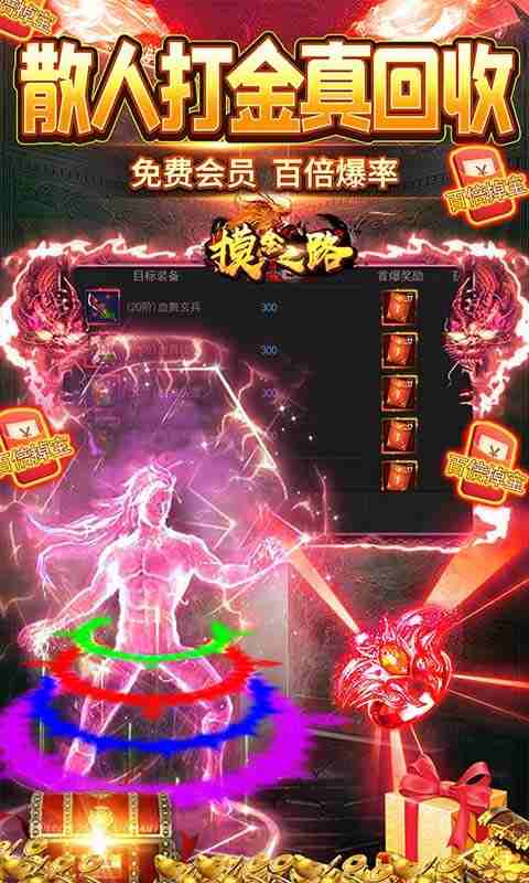 摸金之路(GM无限直充)是一款超变复古神器版本!游戏内置福利玩法无限直充,玩家可通过击杀boss或者活动获得直充币,进行游戏充值且激活所有累充活动。同时游戏内所有装备均可通过红包回收获得海量红包,装备等阶越高可兑换的红包越多!精美的画面,多人激情战斗pk,不玩套路,散人当爷,快来加入我们一起激情吧!