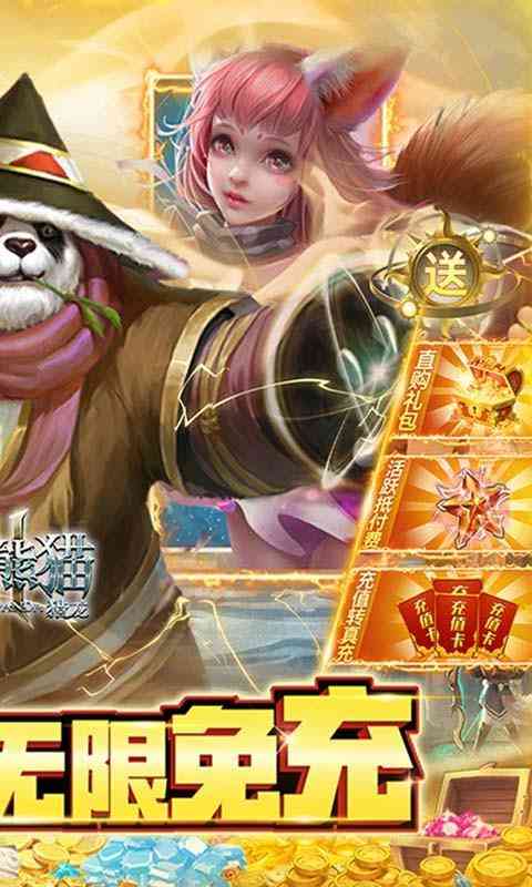 《太极熊猫3:猎龙(GM科技无限免充)》是一款以激爽战斗为核心的3D魔幻ARPG手游。福利大幅提升,VIP23,“刷无限免充”称号,额度券*500,钻石*258888,绑钻*288888,紫色兑换券*1000,金币*2000W,小飞鞋*9999!三大特权震撼来袭,天天再送真充卡!让你玩到爱不释手! 游戏不仅拥有超高清画质,并传承了当下最正统的、最受欢迎的游戏玩法元素,却又融合了新创的平衡数值养成,大量新增副本,经典坐骑,激萌宠物。 天神让你的战力起飞!全新魔幻世界,多样跨服竞技,瑰丽3D视觉特效,上乘的游戏品质,酷炫的游戏场景,多种陆空坐骑任你捕捉。战场跨服战,战个痛快。自动主线,解放双手。