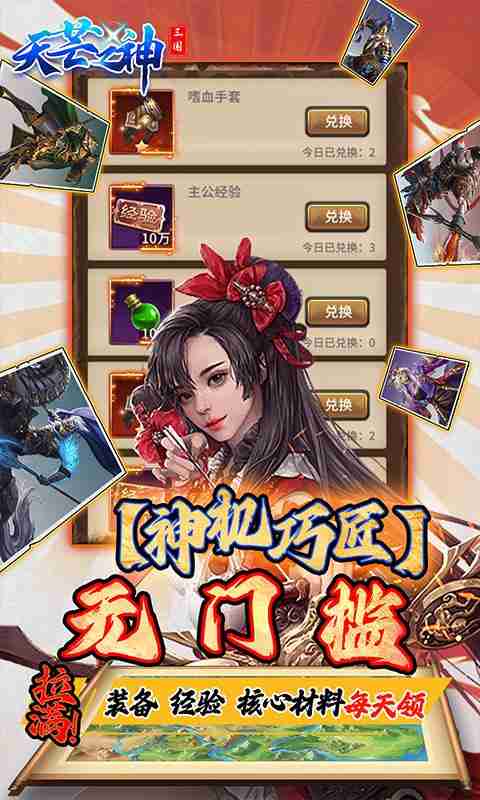 《天芒之神(送30亿GM拉满)》是一款写实三国挂机卡牌游戏;丢掉所有套路,专做良心拉满版本;最强拉满工具【神机巧匠】上线,完全无门槛免费送装备、材料、资源、经验(主角)等,直接毕业点击就有;上线送5个5星武将,5套橙装,直接开干不解释;每天送5星,不抽也能变强;每天签到送1亿元宝,挑战30天花光30亿,至强装备等你来拿!
