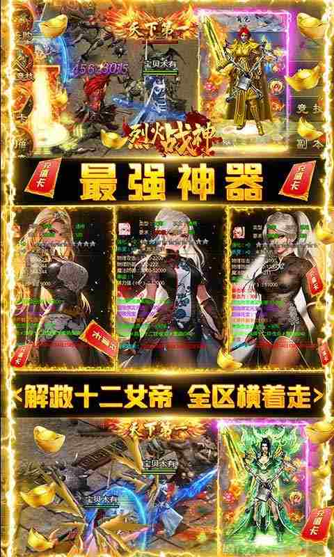 烈火战神(十二女帝爽爆充)一款集经典与创新一体的全新激情超变单职业传奇。