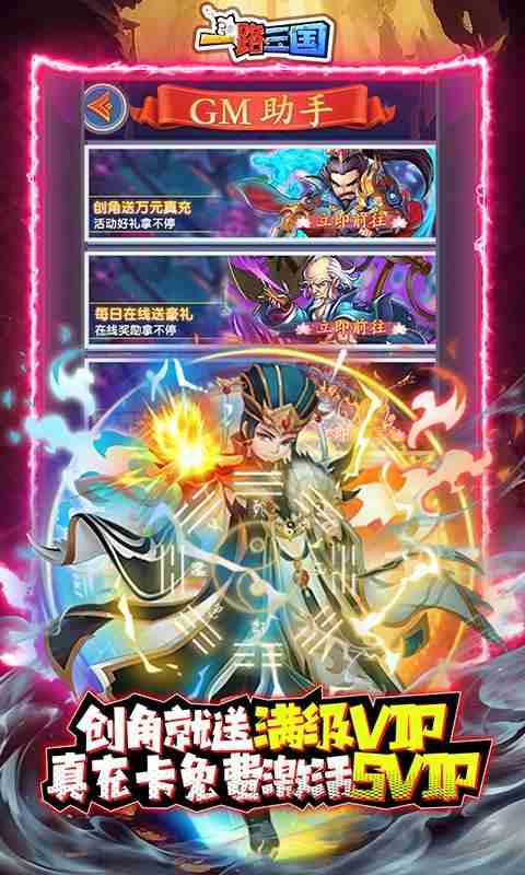 1、新版[无双GM],无双商城无双基金免费激活 2、创角就送万元真充,每日在线能领2000元真充,日常任务再领海量真充,真充拿到手发软 3、免费激活首充大礼,可获得强力彩金将[真吕布] 4、GM无限资源特权免费解锁,各种资源领到手软 5、开局还送200无双币、真满V、金币888万、元宝88万、体力5000 6、还可免费提升SVIP,豪华特权礼包任性购 7、次日送无双金将,三日送金色宠物,连续登录还有海量资源领不停,金饰品、金装备、金法宝、金时装统统免费拿