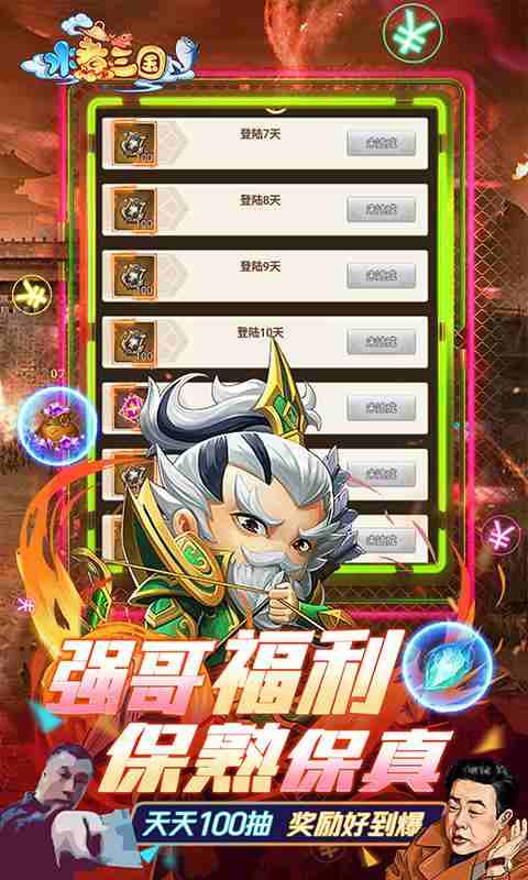 2、 开服强哥豪礼,10星武将、万元现金、万元充值卡,免费得