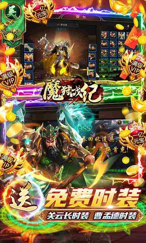 《魔狩战纪》全新大米代充,打怪获得代充券,使用可获得大米,真正的散人福利版本,还有全新特色魂环系统,魂环加成称霸三国!登录送代充魂环,完成任务送满级VIP,送无限点券,点券可兑换首充、自动回收、自动分解,超爽百倍爆率,万物皆可爆,满屏光柱,爆啥都是米!精英必爆点券!BOSS必掉大米!充值全靠爆!,一秒5刀,刀刀切割,砍怪如切菜,主线送关云长时装,三国传奇乱世等你来战!