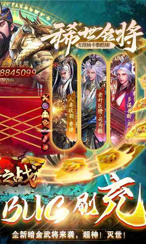 1.史诗全新BUG版本,上线即送8888万8888元宝、3亿银两、兔年大红包*10、专属称号!还有线下五百抽!全套红将!全套武将神兵!等你来拿!游戏福利一次搞定! 2.匠制作心BUG工具,在继承原有福利的基础上,程序解锁了游戏BUG,每激活一项功能就能免费领取BUG奖励!千抽?时装?永久称号?永动免费代金点?我全都要! 3.策划钜制,全新养成系统丹药,四象神丹养成获取海量战力,助你驰骋沙场,主公神武一骑当千!还有BUG福袋,关关必掉,元宝、材料、真充全都在里面! 4.新版本暗金武将来袭,超神!灭世!无双!光环!全新阵容组合彰显主公勇武!七天登录可免费全套+3金将及两千抽,主公阵容猛将如云。 5.超强BUG内部号,终身返利领不停!次日登录免费获取。提升BUG等级获取更多每日奖励,白拿活动累充福利档位! 6.上线免费特权激活无限打金,四大特权转盘免费抽取保底大奖!通关精英、噩梦关卡掉落代金卡碎片,免费合成获得代金点购买相关内容。还有更多福利内容游戏里体验,游戏福利不仅仅一次而已!