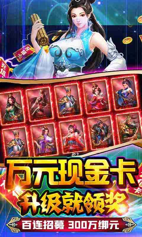 ★上线福利:GM1、送神将貂蝉,百连招募,300万绑元,一亿银两