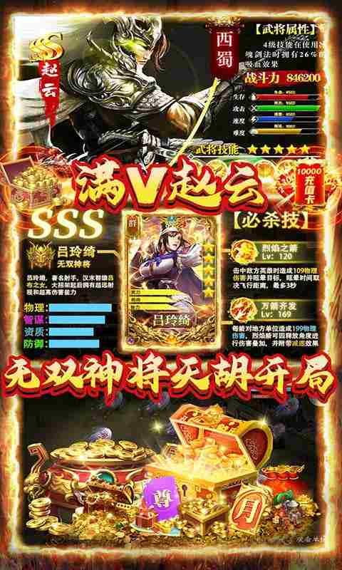 ※ 登录即送满级VIP、无双赵云、一百万元宝、一百万铜钱、限定称号、海量资源大礼包。