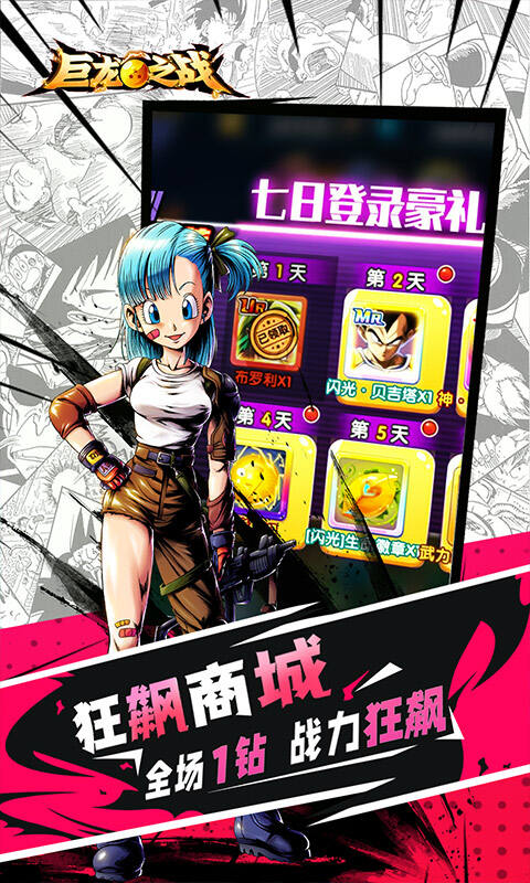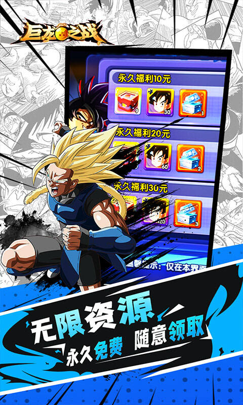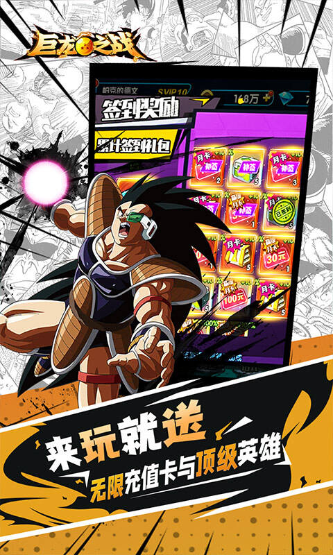 超爽横版龙珠卡牌手游-《巨龙之战(回手掏50W抽真充)》震撼来袭!本次版本的福利力度与升级速率大幅上调,怀旧经典IP改编而成,华丽的视觉战斗设计,完美展现真实的打斗,体验震撼的打击,与超级赛亚人组队,一起闯出一番天地吧!