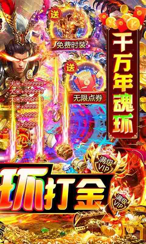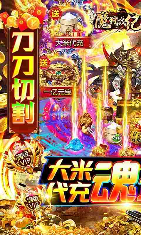 《魔狩战纪》全新大米代充,打怪获得代充券,使用可获得大米,真正的散人福利版本,还有全新特色魂环系统,魂环加成称霸三国!登录送代充魂环,完成任务送满级VIP,送无限点券,点券可兑换首充、自动回收、自动分解,超爽百倍爆率,万物皆可爆,满屏光柱,爆啥都是米!精英必爆点券!BOSS必掉大米!充值全靠爆!,一秒5刀,刀刀切割,砍怪如切菜,主线送关云长时装,三国传奇乱世等你来战!