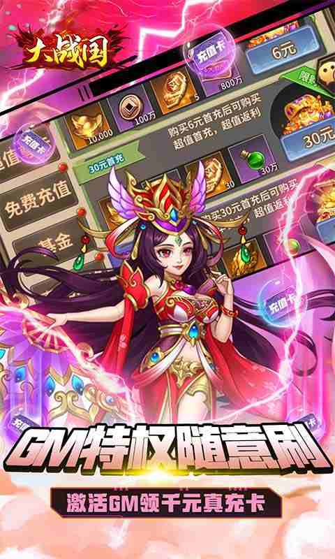 大战国(GM余额免支付)是一款以三国时代为背景,深度打造的放置养成游戏大作。丰富多样的对战让你体验具策略的放置卡牌玩法,武将搭配、战略布阵将助你征战三国时代!