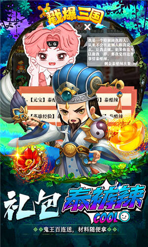 ★上线送现金券*10000、泰酷辣宝箱*1、铜币*1亿、英雄经验*1亿、泰酷辣币*10000、资源泰酷辣*100、泰酷辣名将卡*10、游戏泰酷辣*1(定制称号)