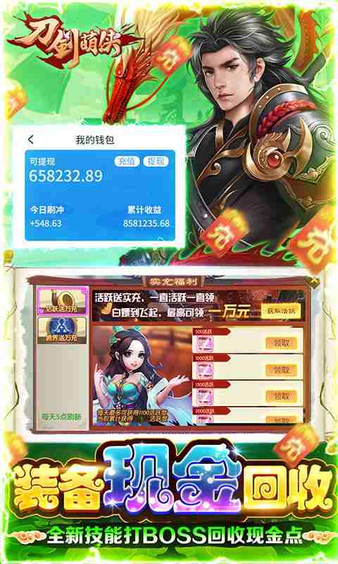 ★全新装备玩法-射雕装备,全新技能等你来体验,更有现金回收功能,打BOSS回收现金点,0氪也能当大佬