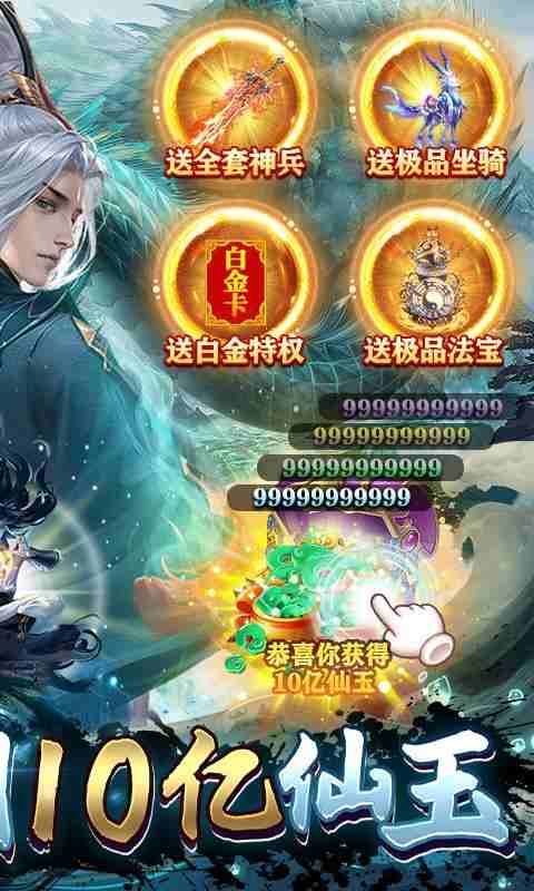 1.创角领取现金点,获取充值额度可免费充值,激活大量活动。 2.上线充值场割草刷充,百分百必得仙玉与充值 3.任务解锁满级VIP,送顶级神器,抽顶级战力。 4.送全套神兵,战力飙升36666666+ 5.闯关送极品仙童,极品飞剑,极品法宝 6.充值比例1:10000,首充多倍,拿海量元宝 后缀说明:上线在主界面可进行仙侠割草,免费进入充值场,必定获得仙玉。还有现金点无限制破解刷充,可激活充值活动