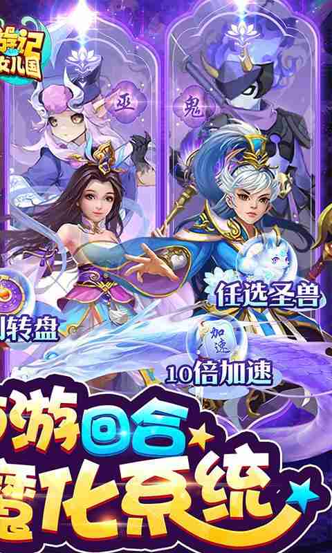 《西游记:大话女儿国(送无级魔化抽充)》是一款专为回合爱好者定制的回合手游,战斗机制、经典玩法都能带给你。原汁原味的经典回合制游戏体验。上线就送海量水玉和珍贵道具,充值卡天天领不停!游戏在保留经典回合玩法的基础上,突破传统模式,爽快升级、激情跨服PK、极品装备全靠打、5宝宝上阵独此一家。百变个性时装、称号、坐骑、法宝等外显效果,打怪泡妹两不误!还请各位大侠进来一试,梦回大唐盛世,游历三界奇缘,纯粹的经典回合手游!