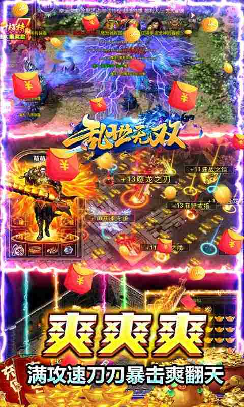 《乱世无双(魂环亿万爆MAX)》是一款全新传奇手游,免费打金刷充福利版全新来袭。以斩妖除魔为背景,剧情丰富有搞头,技能特效有讲究,之间冒险纵横,热血的战斗为你带来超爽的体验!炫丽的技能秀翻全场,精准的打击斗智斗勇。在玩法方面,以打金、升级、爆装、抢沙等传奇核心玩法为主。快快加入与兄弟们征战吧,成就神界最强战士!变身传奇修士,一起除妖伏魔!诛仙剑阵、九龙拉棺,众多玩家等你来。开局刀速拉满,全屏爆光柱,送充值红包,五倍返利带你畅享逍遥,爽到爆的超变,嗨到起飞的体验!上线送神器,每日签到领海量豪礼,超值活动超高回报,真充无限爆刷无限领!兄弟快上线,真热血传奇邀你来战!