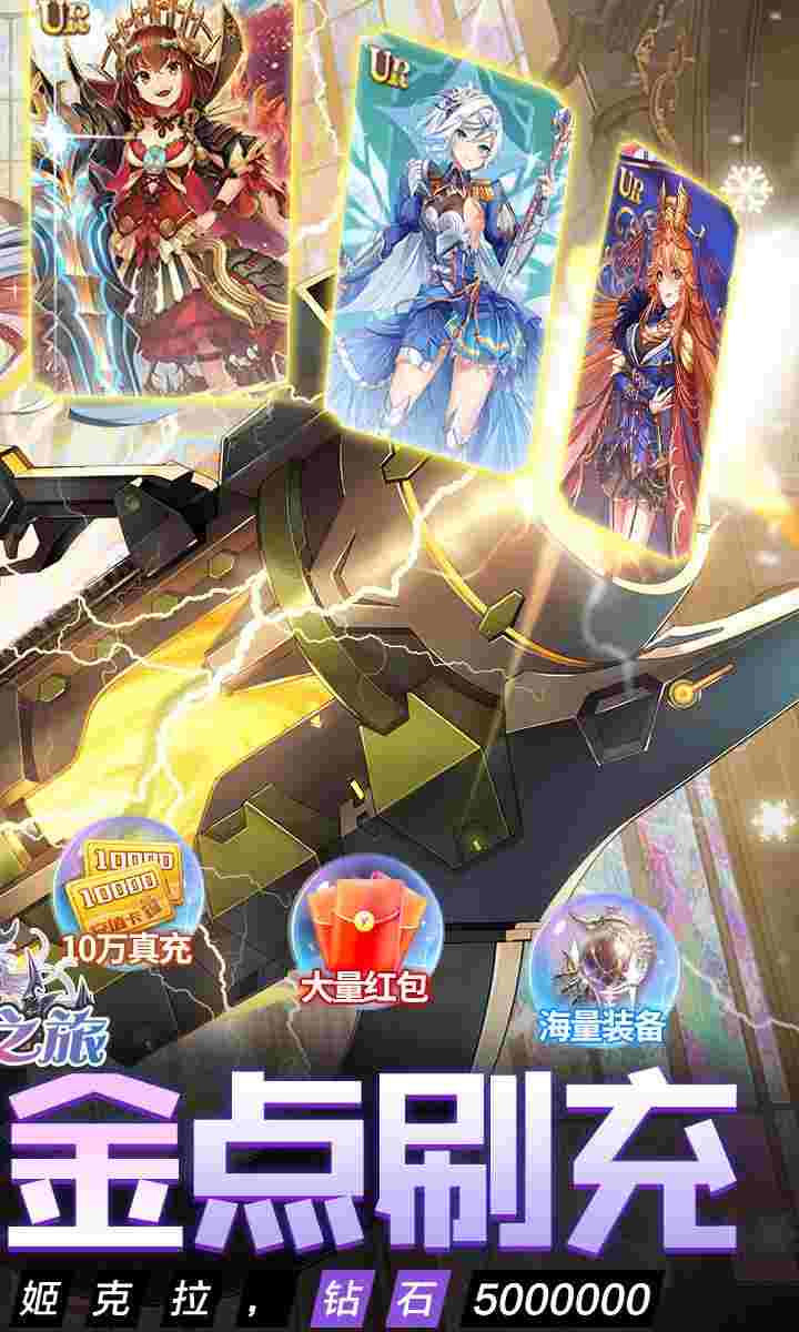 1、送满级VIP30、钻石*50万、1万充值卡 2,送超强UR英雄御蛇姬克拉,配套运营活动免费升星 3、登陆领十万真充,无套路激活运营活动 4、游戏内置现金点刷充,代替RMB免支付到账 5、游戏内置破解工具,可购买海量礼包、终身特权、永久赠送福利 6、彩钻商城1钻石购买全部商品,每天购买 7,八天登陆送光暗UR女神、全套极品装备助力成长 8、在线奖励送真充卡、抽奖券、养成材料,平民也轻松培养