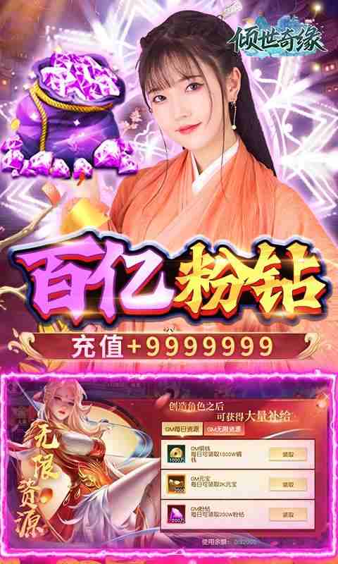 全新高自由度开放式仙侠手游《倾世奇缘(GM免费刷充高返版)》重磅来袭!登录即送VIP20、1052元现金卡和专属GM套装!全民免费代充,累积钱包余额即可实现免费充值提现,还能激活大部分累充活动!升级白赚100万现金卡,现金宝库免费抽充值!游戏以我国四大民间传说之一的白蛇传为蓝本,用真爱凄美的格调重塑神魔仙侠之间的旷世纠葛。拥有紧贴经典的细腻剧情,自由选择的修仙之道,畅快刺激的战斗冲击。同时还有多种角色体验,精美的场景,炫酷的特效,丰富的跨服对战!全天候的BOSS让你不花钱也能驰骋仙界。仙魔斗战的世界,等你临世再主乾坤。假日宅家的惬意之选~