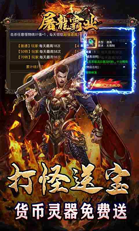 武圣显灵:血量大幅度提升,PK减防百分比增加 会员扶持:亿充扶持免费领,杀怪领货币更有货币红包免费送 十凶四灵:四大凶灵血量防御生命爆涨 打怪送宝:杀怪领货币和宝玉,激活七大灵器 天地法则:神人魔各种时装随意穿搭 分金探穴:寻龙分金看重山,一重缠是一重关,风水挖宝探穴,奖励丰厚