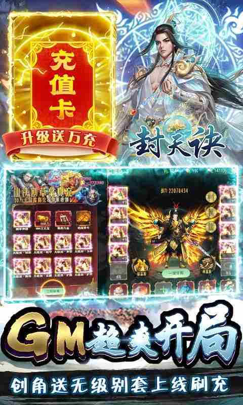 《封天决-刷10亿仙玉》是一款特效华丽建模非常精致的仙侠手游,游戏超出原有福利,所有充值靠抽取现金点充值和割草玩法产出,割草拿无限充值,无限元宝无限铜钱,并且激活大量活动!激活活动获得大量元宝还可用于直接激活全部GM商城,千万战力等你免费拿!无门槛割草简直福利到爆炸。拿着海量福利来培养你喜欢的异兽,带您体验创号即毕业的超爽体验!每日获取现金点转盘,现金点无限制刷充。上线体验割草游戏,刷怪越多收益越高,每天可以免费割草,获得大量仙玉和真充卡并激活大量充值奖励。