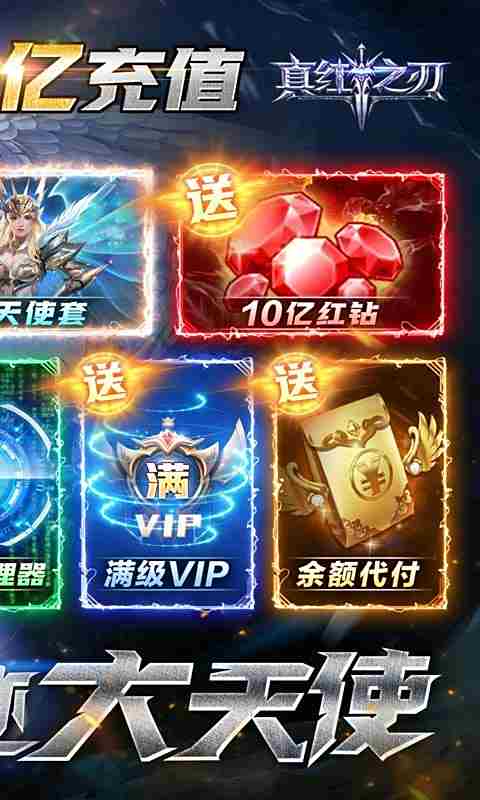 ★上线送满V20、全套卓越装备、绝版翅膀、1000万红钻、99祝福石、酷炫称号三选一
