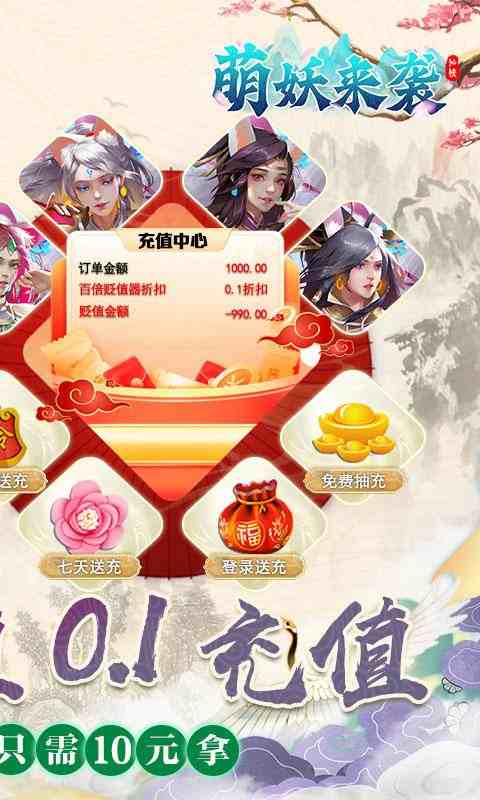 年度仙侠大作《萌妖来袭》震撼来袭,游戏呈现出别具一格的修仙世界,并对修仙世界精彩纷呈的情节进行高度还原!内置劲爆福利,0.1折充值让你体验土豪般的快乐,游戏内所有充值均为0.1折,千元礼包只需10元拿,真实0.1折无限制使用次数!创角直接满级VIP,GM等级通过真充卡免费提升,每日免费领大量真充卡!如此高福利的游戏,你还在等什么?激情的仙侠之路等你来开辟!
