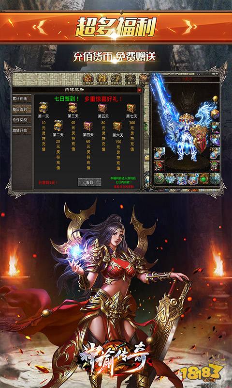 ★变态充值比例1:1000,简单粗暴,战力狂飙! ★上线即送100w元宝,初级时装,材料礼包,助你轻松打怪,快速发展,输入福利礼包码“dalao666”免费获取; ★上线累计在线送充值灵符,每日签到送充值灵符,打怪送充值灵符,充值灵符送送送!专为散人玩家打造; ★超高爆率,刀刀爆装,玩法简单易上手,摆摊交易,属性均衡,全新极品,想要快乐一刀就能解决; ★超多活动,超多地图,热血攻沙,兄弟集结,不服来战!