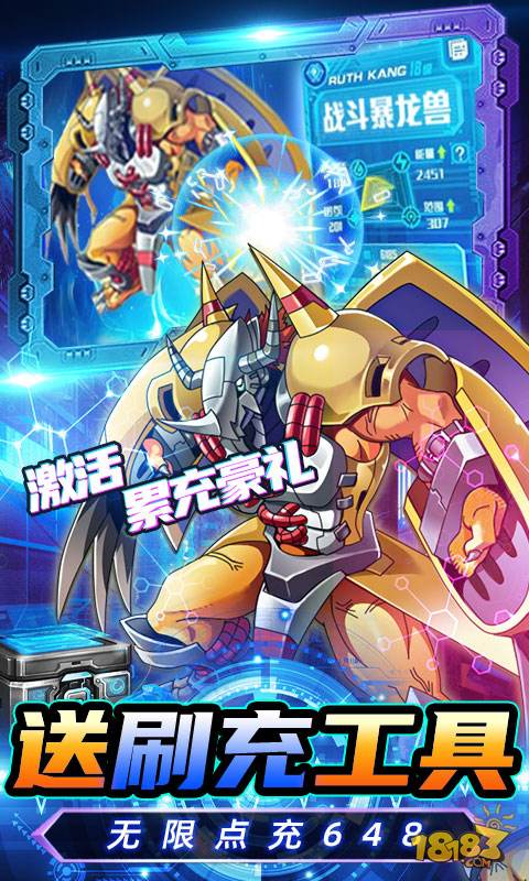 1.上线送VIP7,金币一亿,钻石888万,充值比例1:10000 2.登录三选一主宠数码兽【亚古兽,巴鲁兽,巴达兽】 3.上线就送GM神权,首日万抽领取炫酷坐骑、更有超多真充卡领取。送无限点充,VIP全白给。 4.买断系统,一键买断,终身领取,更有大礼送无限连抽(每天在各种活跃活动里领取连抽道具)。 5.另有海量经典数码兽,游戏里免费得,还原经典,唤起回忆。 6. 每日在线领GM点,GM商城全免,0氪也能当大佬。 7.线下充值返利,钻石拿到手抽筋。线下活动礼包,让你一步登顶! 8.线上线下活动双重出击不停歇,福利满满!