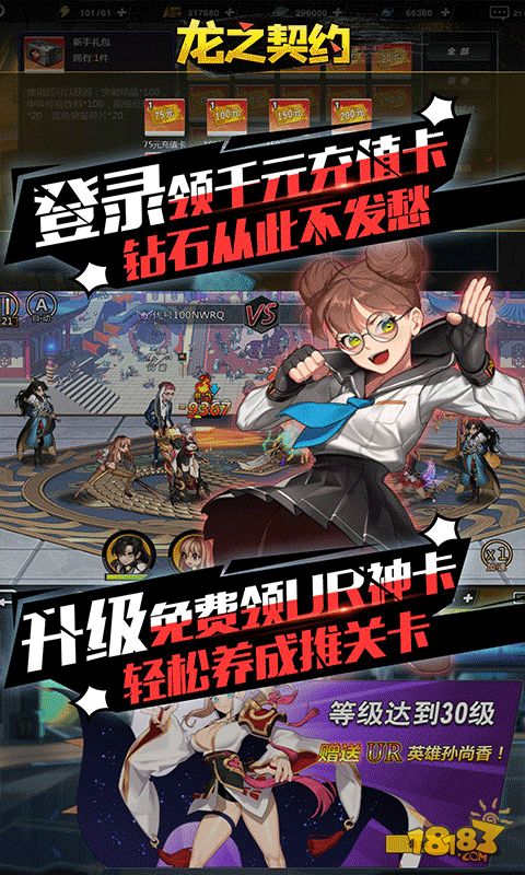 龙之契约(送UR无限充)是经典韩风的一款卡牌游戏。游戏架构了宏大的世界观,以东西方的成名英雄在乱斗的世界里一起对抗抢夺天书的黑暗组织为主线