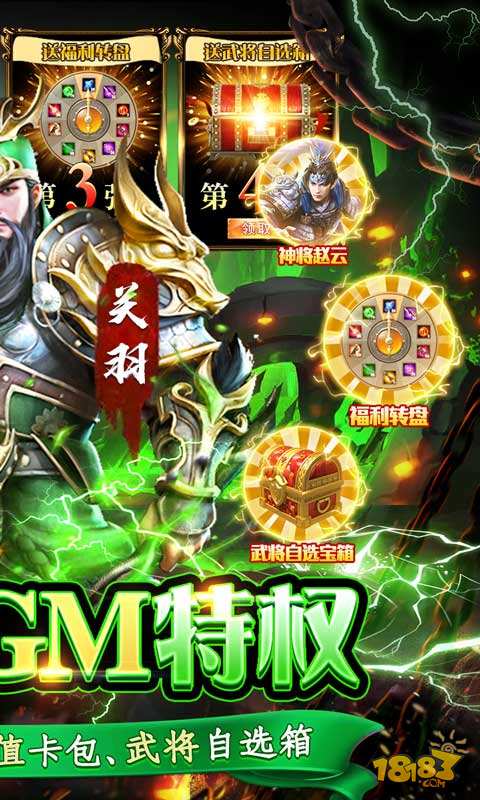 1、上线即送GM1特权,元宝*50000,福利抽奖券*50,红将自选宝箱*1,千元充值卡包,超进阶道具箱大礼包, 2、在线奖励丰富多样!在线5分钟先领元宝!后续不仅有高级装备礼包!更有前期战神赵云华佗等你来领! 3、无限福利转盘每天抽充值卡!使用直接获得真充元宝和经验!更有1元礼包1元月卡等白给项目等你来体验! 4、登陆有礼!每天不仅可以领取海量元宝!还有绝版神器等你来拿! 5、满级GM特权使用充值券免费就能升满 6、GM商城道具每天1元宝领,等级越高,奖励越丰富
