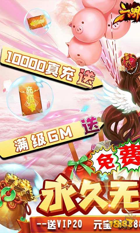 1、免费无限资源:无限铜钱创角全民免费激活无限领,无限神石/元宝终身有效永久无限领! 2、每日免费100抽,GM抽奖(100%抽中)无限抽GM卡,极限解封满级GM商城全免费! 3、登陆免费送GM5特权,绝版神器,转生壕礼再送无门槛10000元真充,洪荒神装免费送! 4、开局四角色,免费送vip20,元宝*888888,永久时装-泳池派对套装*1,铜钱*1亿! 5、充值比例1:2000,直升GM6充98送2000真充,送5星仙宠六界花神,秒开GM6商城!