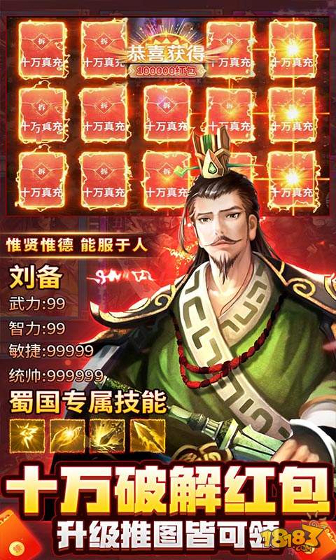 1、上线送VIP18,神器,无限召唤券,288888元宝 2、无限召唤武将,抽到你心愿所属武将,直到满意为止 3、十万破解红包,升级推图皆可领,还送SSS武将,专属武器,神器,无限召唤券 4、GM破解商城,各种养成资源一键购买,轻松养成 5、登录三天送神兽、七天再送SSS武将
