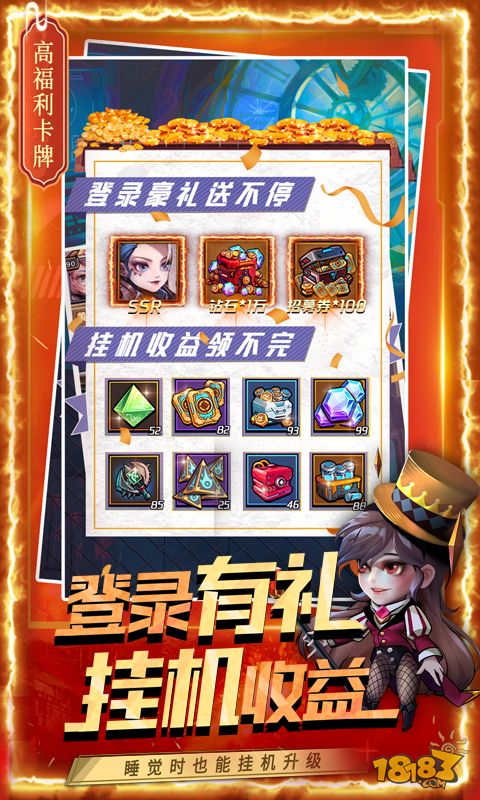 1.赠送声望10,开启五倍速及多重特权福利 2.赠送金币999999,钻石88888,成长礼包 3.登录送百抽,每日福利,声望福利等多重福利每天免费领取充值卡以及抽卡 4.每日任务,每周任务,每月任务完成任务赠送充值卡/抽卡及各类资源 5.新增神权招募,完成每日任务可以战令免费领取神权招募令 6.超高倍爆率,五星英雄轻松获取,助力加速阵容成长。