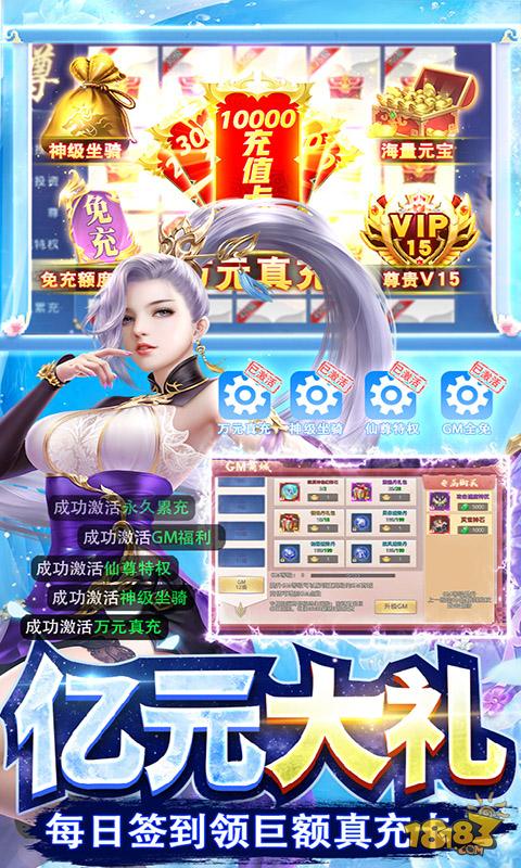 版本福利点 1.免费额度刷充值 2.每日登录领百元真充卡 3.GM福利全免 4.升级领万元真充 上线福利:上线送VIP15+66666元宝,登陆送真充卡,活跃爆充值额度,万元福利免费领取