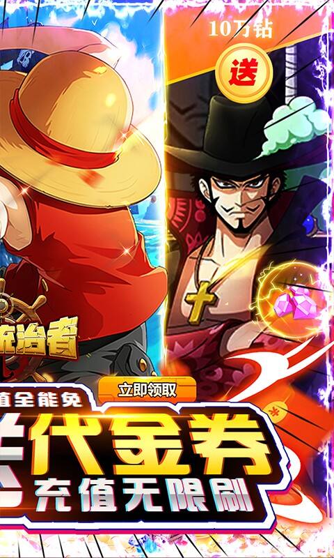 1、登陆就送V10、UR-龙马、10万钻石、材料招募令*100、贝利*100万,上线就当大佬,闯关毫无压力! 2、连续登陆领壕礼,顶级角色等你拿。 3、连续升级领真充,开服就当万元户,万元充值随心花! 4、完成任务领代金券,所有充值全免费,每天都能换充值! 5、闯关就送真充碎片和千抽,无限充值每天都能换,UR卡抽到手软! 6、完成每日任务,天天领百元真充,可激活累充奖励!