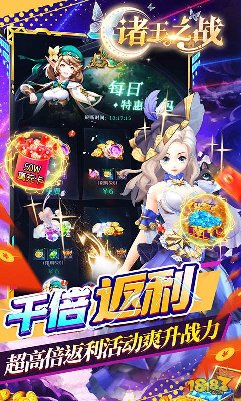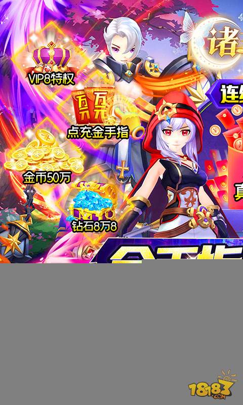1.上线即送VIP8、点充金手指、金币50万、钻石8万8! 2.连续登录可领50W真充卡、钻石返利最高2.5倍! 3.首充、精致月卡、战令闯过第一大关即永久赠送、价值千元必购合集! 4.千倍返利一元购,仅需一元,总价千元豪礼相送! 5.无套路钻石真充卡,无隐藏货币玩到爽!
