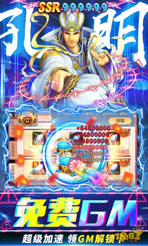 1、上线送VIP18、送30万真充称号、金币*8880K、宝石*888K; 2、开局送4勾顶级神将赵云,6勾超级血牛沙僧 3、在线每日送天神币,欧皇转盘无限抽充值卡; 4、每日登陆送百万钻石,每天签到巨额送充值卡; 5、主线战令免费送海量充值卡和养成材料,助力武将培养; 6、无限资源一次买断,终身免费; 7、新人福利1元购直升100级,更多海量福利等你解锁!